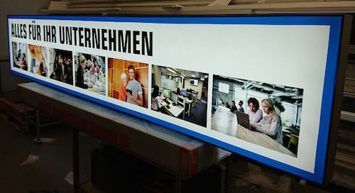 *アルミ複合版にLEDモジュールを貼るタイプ→隅々まで面が光るので大きなサイズも対応可能。いずれも片面発光のみなので、主に壁付けに使います。高輝度タイプで明るい。
