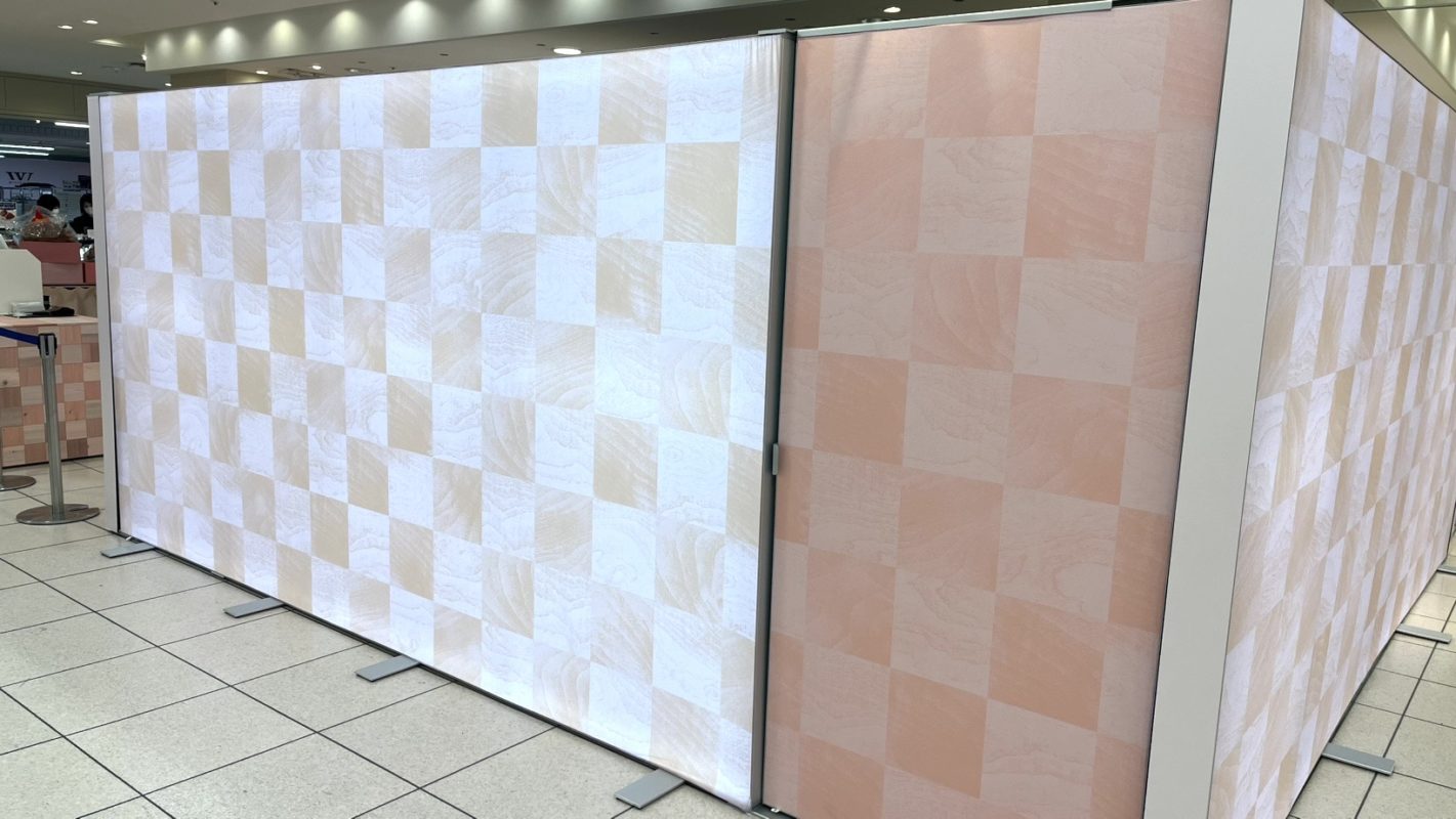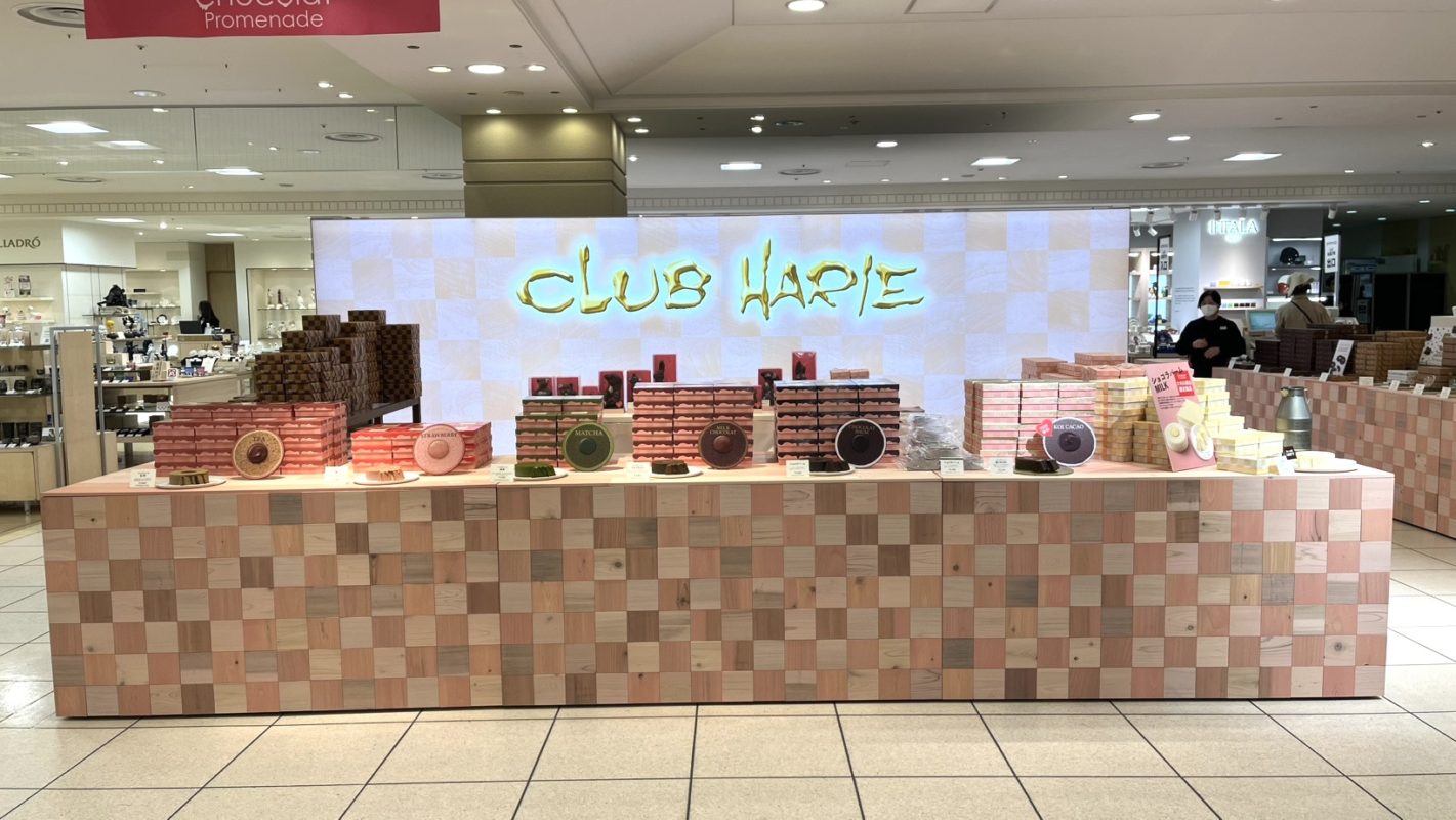 こんにちは、pansいぬかいです。午年第二弾のこのBLOGでは積極的にLEDUPシリーズをお使い頂いている企業様2社をご紹介させて頂きます。1社目はバームクーヘンで有名な「クラブハリエ様」。年明けより2/14日のバレンタインデーに向けて全国数カ所の百貨店にてPOPUPストアを展開中ですが、大きなスペースである大丸札幌店のPOPUPショップでお使い頂いています。今回が初めてではないですが、社員さん達が組立てと撤去をされており、移動展示が多いクラブハリエさんの用途にはピッタリハマっています。大丸札幌店ではBIG LEDUPのDoorも取り付けてストックヤードとしました。