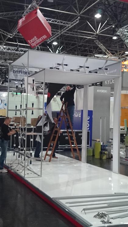 こんにちは、pansのいぬかいです。EuroShopレポートの最終回です。撤去の時の写真を公開します。best systemsは全ての壁面をマルチフレームのファブリックで構成している、と前回も書きましたが、ではこの写真のウォールペンギンはどうやって取付けてるんだろう? と不思議に思いませんか? 木工壁面じゃないのに・・・。