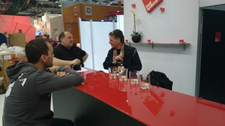 コーヒー、水、お酒類、スナック類はヨーロッパの展示会では必須です。これはアジアやアメリカではあまり見られない傾向ですが、「座って一緒に好きなドリンクとスナックをつまみながら商談する」という ”お・も・て・な・し” が間接的にもビジネスに繋がる訳です。あそこの会社で呑んだワインとウィスキーは美味しかったなあ~、という具合に(笑。 印象に残ってくれればOKですからね。