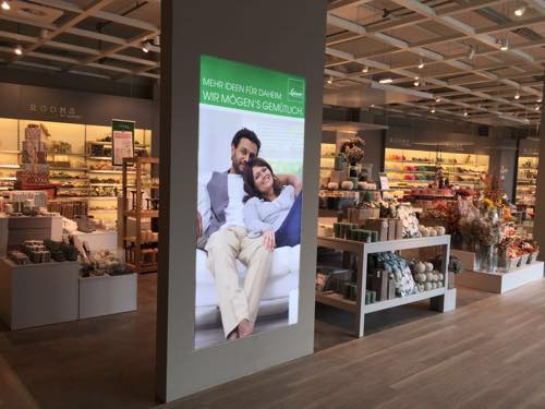 こんにちは、pansいぬかいです。ヨーロッパの導入事例です。日本でいうとニトリとか大塚家具とかIKEAとか、そういった大型家具・生活用品店にマルチフレーム数種類が導入されました。”数種類”と書いたのは、壁面に埋め込む条件によってサイズやLEDを変えているから、です。 例えば壁側に奥行きの余裕がないと…